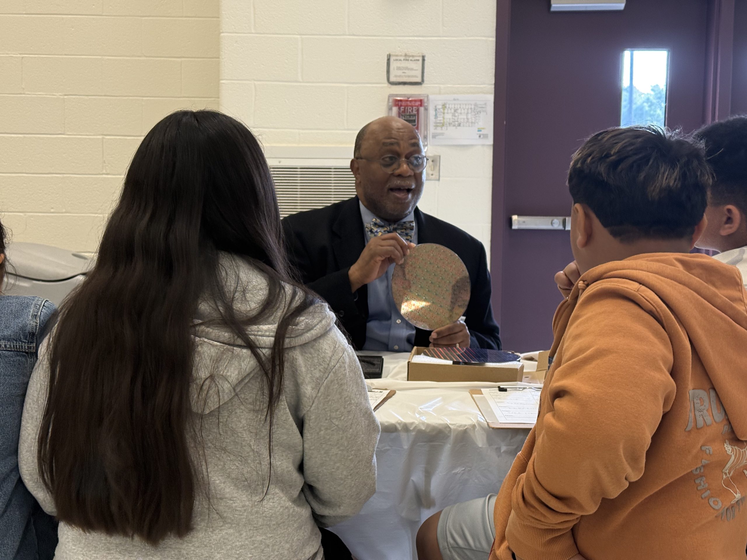 On April 25, 2025, brothers of Sigma Mu Mu Chapter, Third District of Omega Psi Phi Fraternity, Inc., supported the annual Sugarland Elementary School Career Day in Sterling, VA by serving as STEM career representatives. The Career Day was conceived by Sugarland administrators to expose the students in grades 3 - 5 to career options. Career stations were available for the 350 participating students to visit and learn about careers in public service (Fire Fighter and Police Officer) as well as technical fields such as network engineering, software engineering, satellite communications, data analytics, semiconductor engineering, and the medical field. Sigma Mu Mu brothers Duane Keye and Lee Johnson spoke specifically about semiconductors and network engineering, respectively.